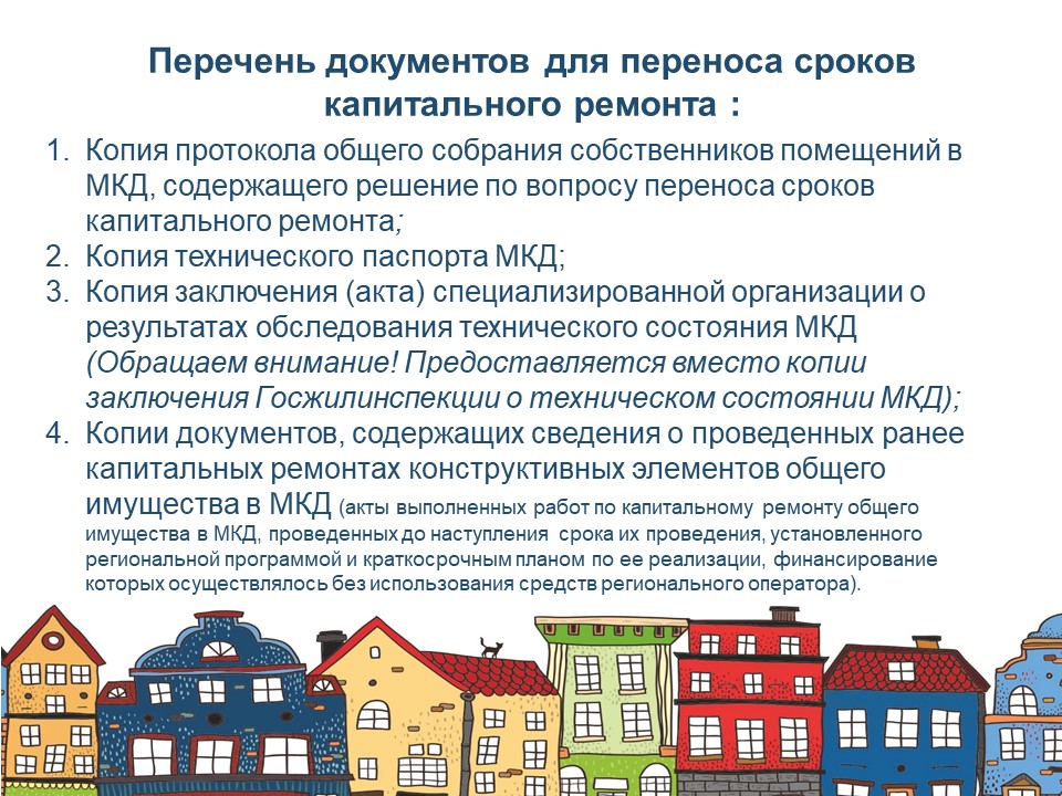 Изменен перечень документов для переноса сроков капитального ремонта многоквартирных домов.